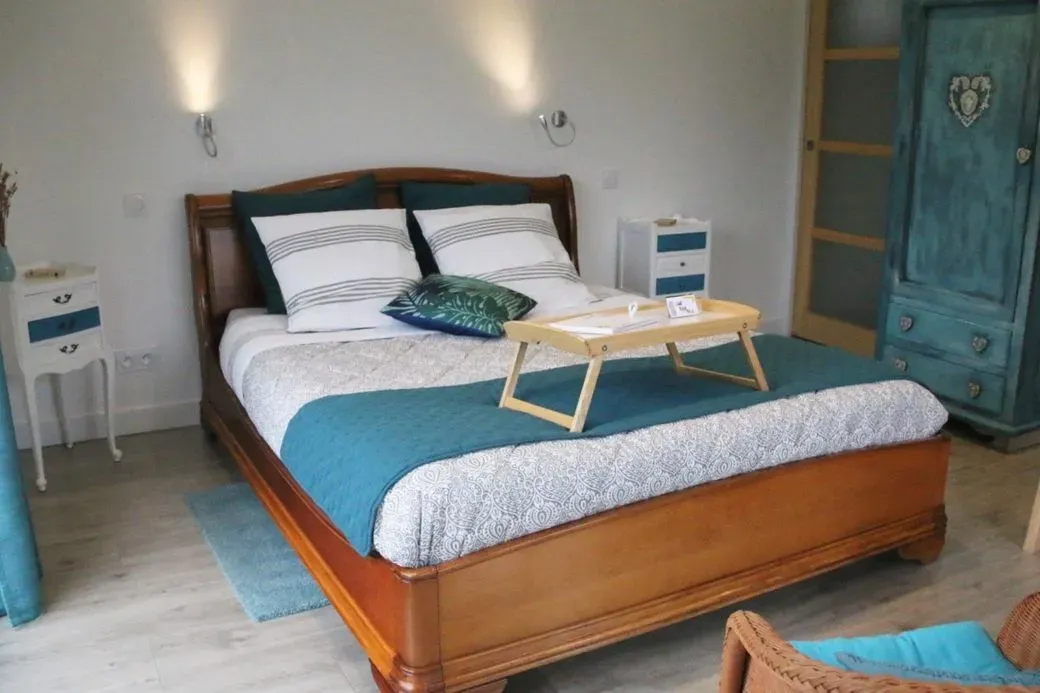 Profitez d'une chambre spacieuse et chaleureuse, idéale pour un séjour reposant dans la campagne de Nort-sur-Erdre.