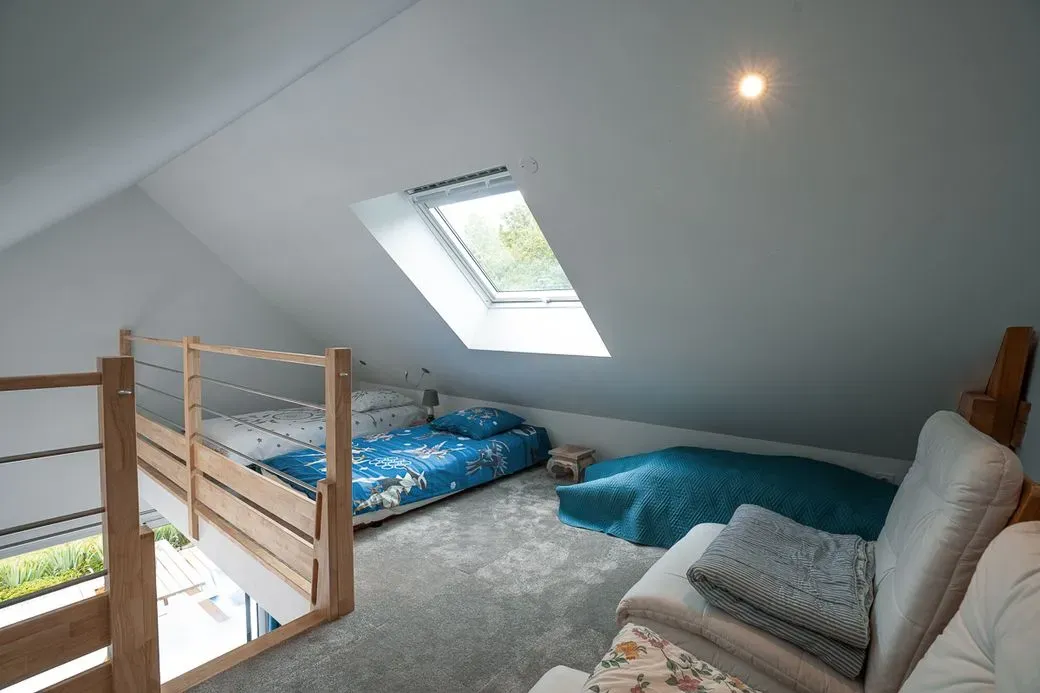 Une mezzanine accessible par une échelle, équipée de 2 lits de 90.